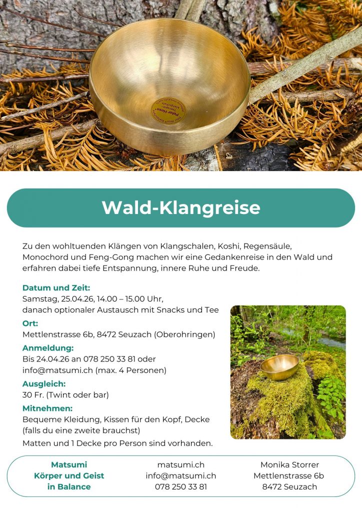 Möchtest du regelmässig per E-Mail und/oder WhatsApp über meine aktuellen Veranstaltungen informiert werden? Dann schreibe mir an info@matsumi.ch oder 078 250 33 81. Oder folge mir auf Instagram: matsumi_klangmassage, matsumi_jikidenreiki.